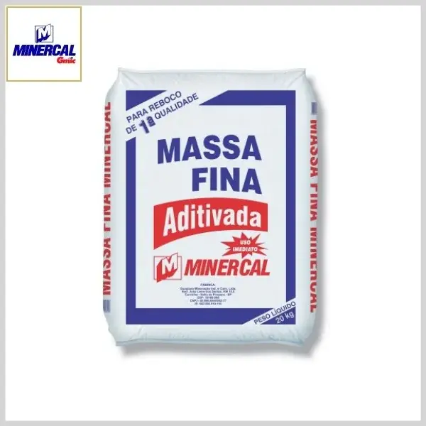 Massa Fina Aditivada: Revestimento Interno e Externo, 20kg - Saco Plástico - Minercal