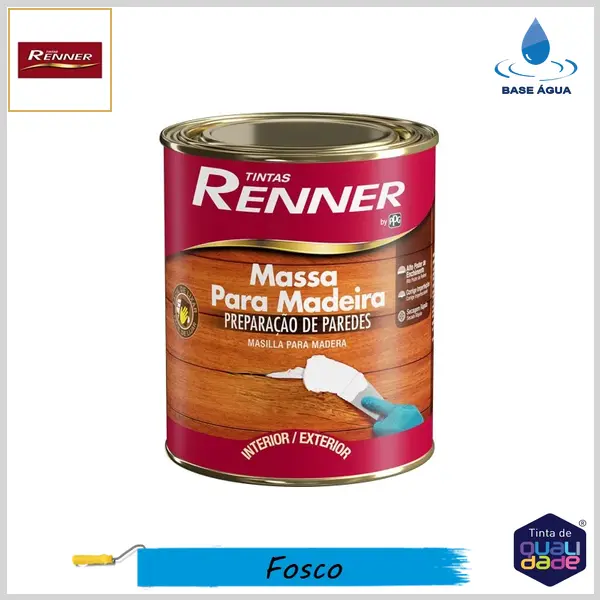 Renner Massa para Madeira é um produto de cor branca a base de água, desenvolvida para facilitar o processo de pintura em madeiras, pois corrige e nivela imperfeições existentes deixando o acabamento perfeito e sem irregularidades. De fácil aplicação e lixamento, seca rapidamente e possui excelente rendimento e grande poder de enchimento, além de boa aderência e resistência às intempéries. É indicada para nivelar e corrigir desníveis e imperfeições em portas, janelas, portões, móveis e esquadrias de madeira em geral, tanto em ambientes internos como externos.