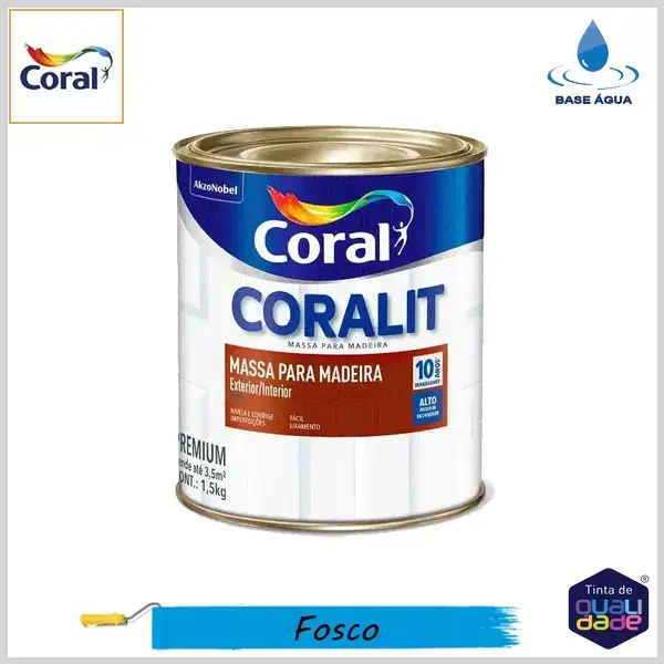 Coralit Massa Premium para Madeira é um produto de cor branca a base de água, próprio para corrigir imperfeições em superfícies internas e externas de madeira. Sua fórmula proporciona fácil aplicação, alto poder de enchimento e fácil lixamento. Com alta aderência e secagem rápida, seu excelente desempenho aumenta o rendimento e a aproteção da tinta de acabamento. Possui durabilidade de até 10anos, quando combinados com a aplicação de fundos e esmaltes da família Coralit. Não aplicar sobre madeiras impregnadas com gorduras, graxas, óleos ou outras impurezas.