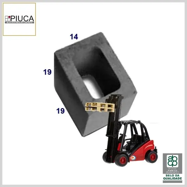 Meio Bloco de Concreto: Estrutural Aparente 14x19x19cm, Pallet Fechado - 4.0MPa, Pallet c/ 200pç - Piuca