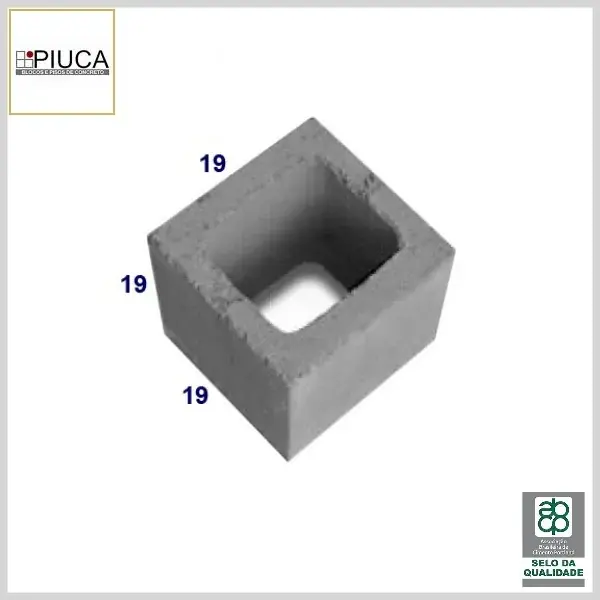 Meio Bloco de Concreto: Vedação Aparente, 19x19x19cm - 3.0MPa, Venda por Unidade - Piuca