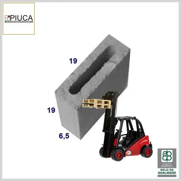 Meio Bloco de Concreto: Vedação Aparente 6.5x19x19cm, Pallet Fechado - 3.0MPa, Pallet c/ 450pç - Piuca