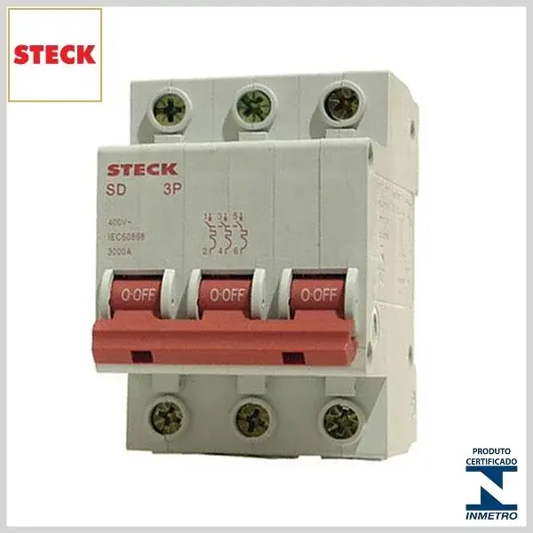 Minidisjuntor SDD DIN 3 Polos 3,0kA 230/400V - Curva C - Corrente: 2 A - Steck