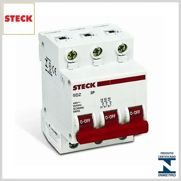 Minidisjuntor SDZ DIN 3 Polos 6,0kA 230/400V - Curva C - Corrente: 2 A - Steck
