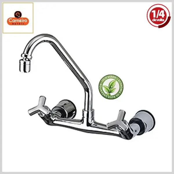 Misturador de Cozinha 1245 C25 Yunnan Parede Bica Alta Móvel 1/4Volta Cromado - Arejador Móvel, Volante Metal - Carneiro Metais