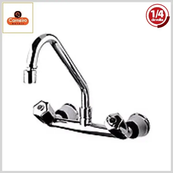 Misturador de Cozinha 1245 C50 Bergamo Parede Bica Alta Móvel 1/4Volta Cromado - Arejador Móvel, Volante Metal - Carneiro Metais