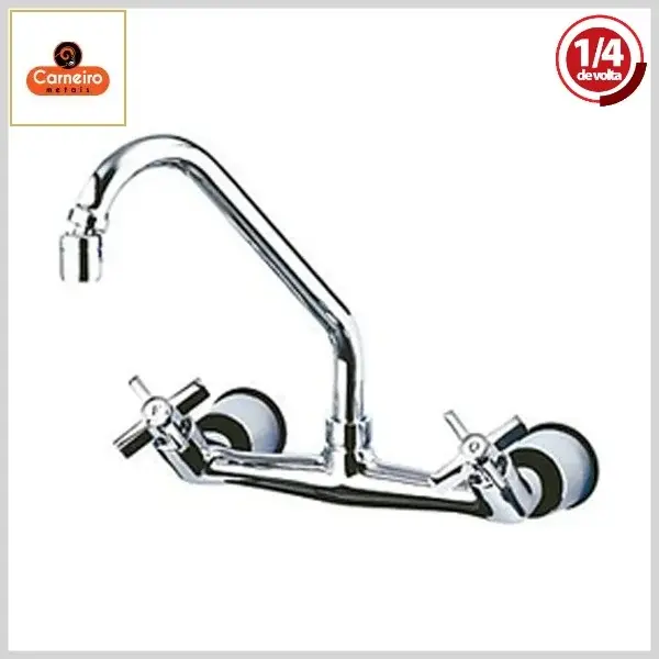 Misturador de Cozinha 1245 C55 Royal Parede Bica Alta Móvel 1/4Volta Cromado - Arejador Móvel, Volante Metal - Carneiro Metais