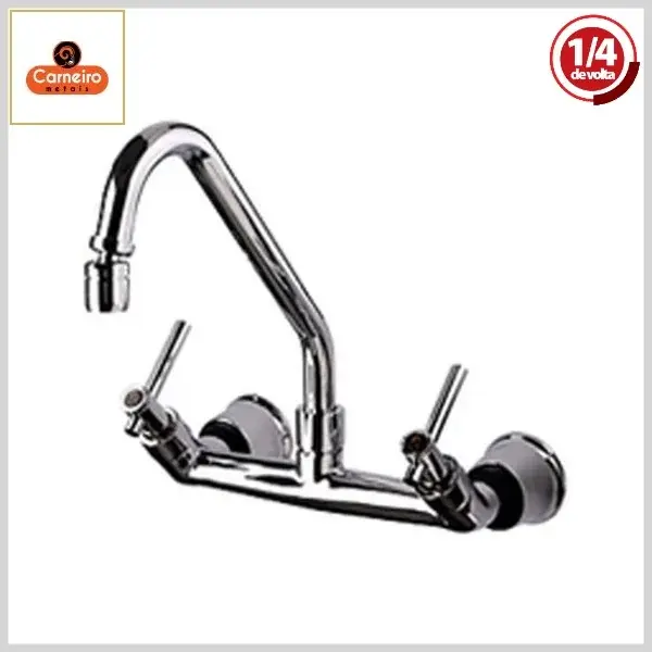 Misturador de Cozinha 1245 C61 Somalis Parede Bica Alta Móvel 1/4Volta Cromado - Arejador Móvel, Volante Metal - Carneiro Metais