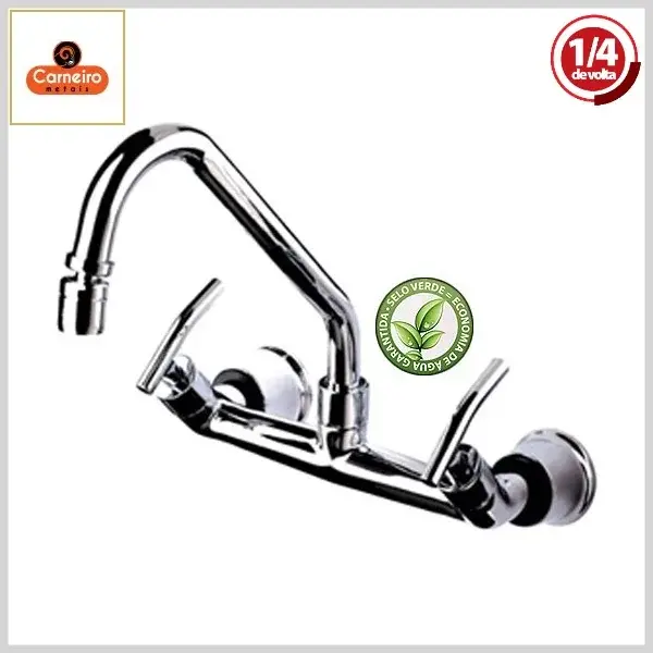 Misturador de Cozinha 1245 C62 Boer Parede Bica Alta Móvel 1/4Volta Cromado - Arejador Móvel, Volante Metal - Carneiro Metais