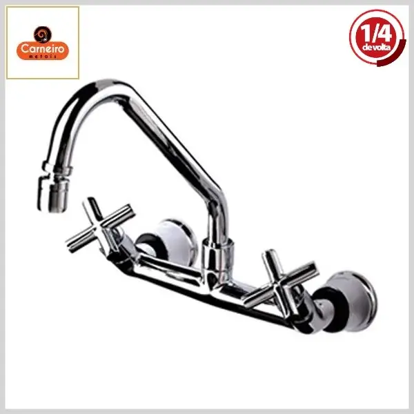 Misturador de Cozinha 1245 C64 Border Parede Bica Alta Móvel 1/4Volta Cromado - Arejador Móvel, Volante Metal - Carneiro Metais