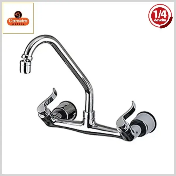Misturador de Cozinha 1245 C66 Cheviot Parede Bica Alta Móvel 1/4Volta Cromado - Arejador Móvel, Volante Metal - Carneiro Metais