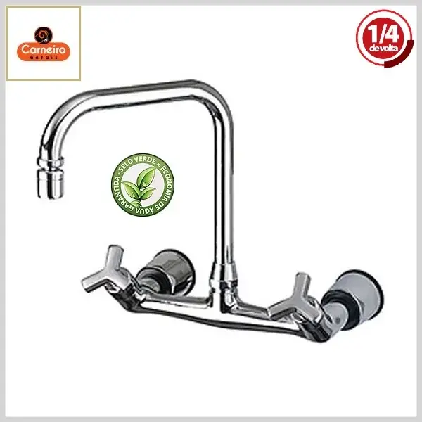 Misturador de Cozinha 1247 C25 Yunnan Parede Bica 90º Móvel 1/4Volta Cromado - Arejador Móvel, Volante Metal - Carneiro Metais