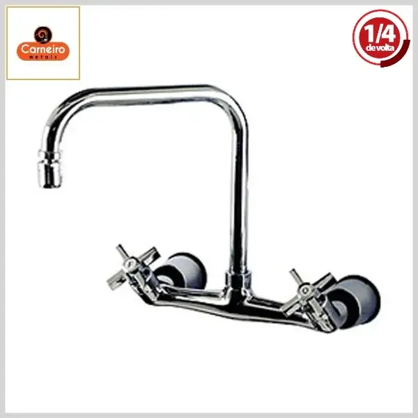 Misturador de Cozinha 1247 C55 Royal Parede Bica 90º Móvel 1/4Volta Cromado - Arejador Móvel, Volante Metal - Carneiro Metais