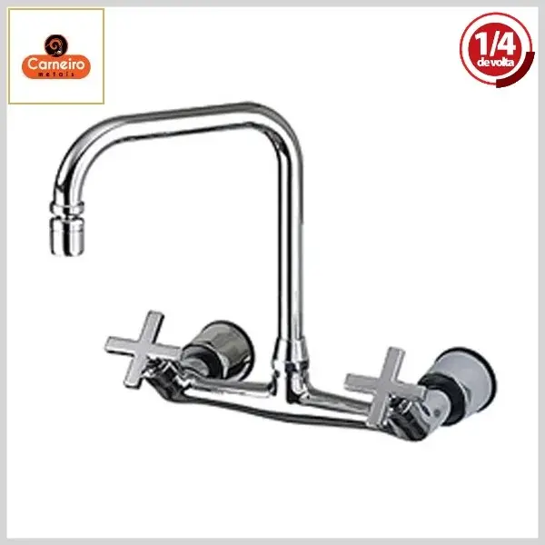 Misturador de Cozinha 1247 C56 Bovska Parede Bica 90º Móvel 1/4Volta Cromado - Arejador Móvel, Volante Metal - Carneiro Metais