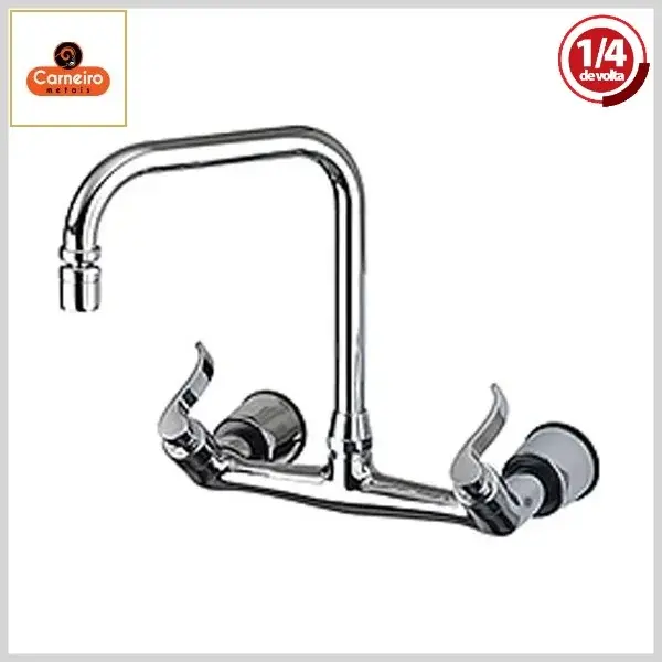 Misturador de Cozinha 1247 C66 Cheviot Parede Bica 90º Móvel 1/4Volta Cromado - Arejador Móvel, Volante Metal - Carneiro Metais