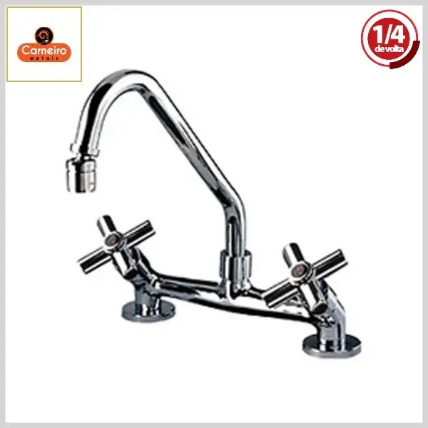 Misturador de Cozinha 1256 C54 Savanah Mesa Bica Alta Móvel 1/4Volta Cromado - Arejador Móvel, Volante Metal - Carneiro Metais