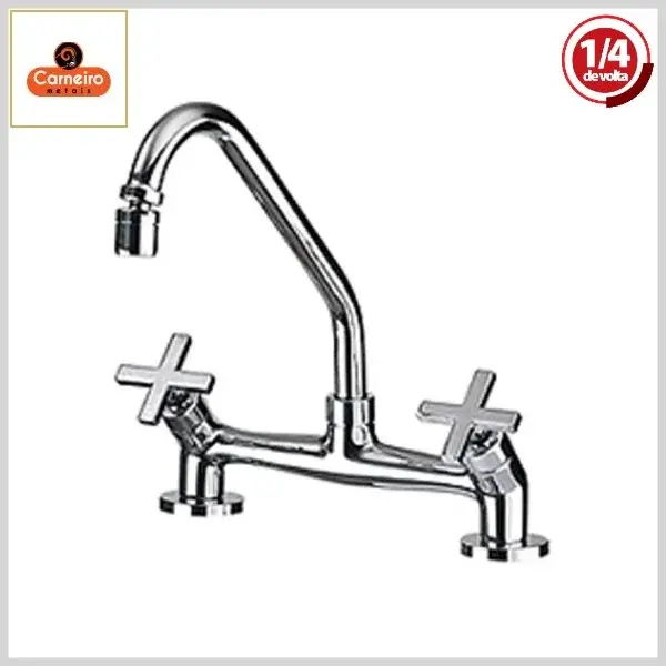 Misturador de Cozinha 1256 C56 Bovska Mesa Bica Alta Móvel 1/4Volta Cromado - Arejador Móvel, Volante Metal - Carneiro Metais