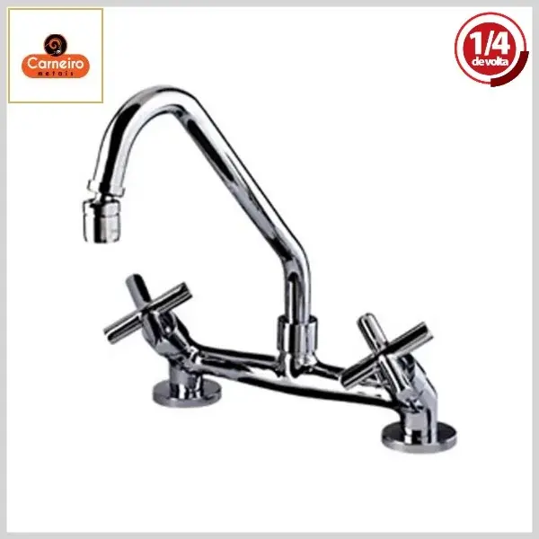 Misturador de Cozinha 1256 C64 Border Mesa Bica Alta Móvel 1/4Volta Cromado - Arejador Móvel, Volante Metal - Carneiro Metais