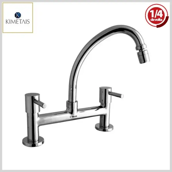 Misturador de Cozinha 1857 C58 DelicattaSlim Mesa Bica Móvel 1/4Volta Cromado - Arejador Móvel, Volante Metal - Kimetais