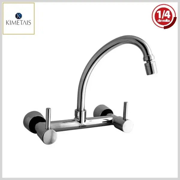 Misturador de Cozinha 1857 C58 DelicattaSlim Parede Bica Móvel 1/4Volta Cromado - Arejador Móvel, Volante Metal - Kimetais