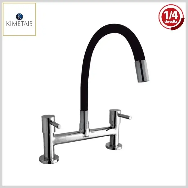 Misturador de Cozinha 1857 C58 Vitacor DelicattaSlim Mesa Bica Flexível 1/4Volta Black/Cromado - Arejador Fixo, Volante Metal - Kimetais