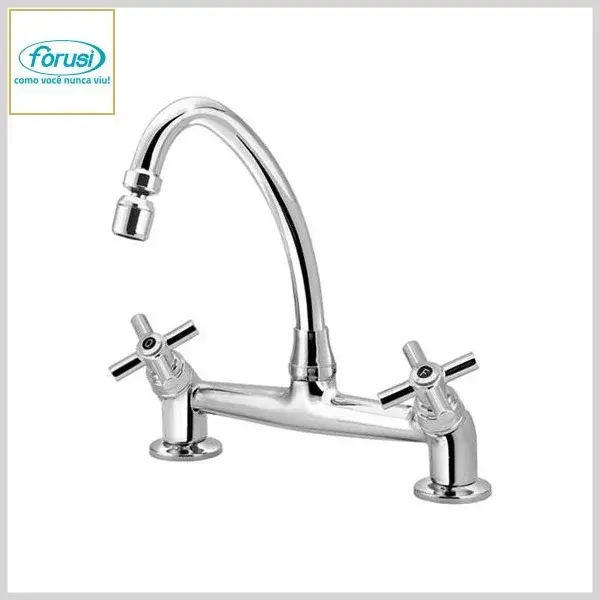 Misturador de Cozinha 2160 C-37 Mvs Mesa Bica Móvel Cromado - Arejador Móvel, Volante Metal - Forusi