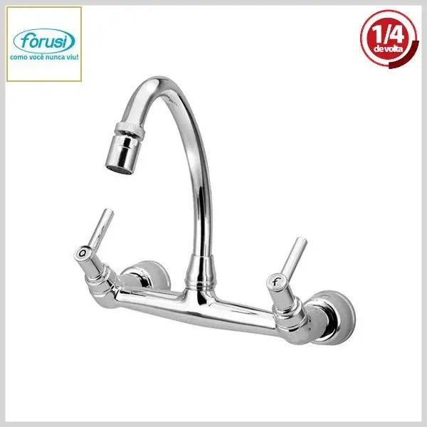 Misturador de Cozinha 2160 C-55 Luxo 1/4Volta Parede Bica Móvel Cromado - Arejador Móvel, Volante Metal - Forusi