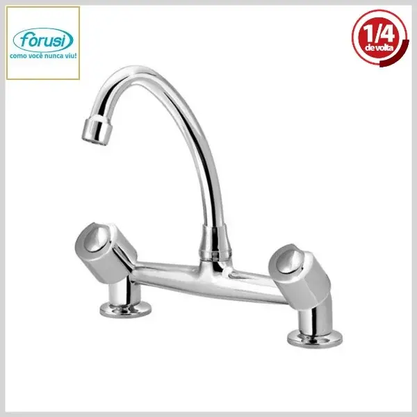 Misturador de Cozinha 2160 C-90 Luxo 1/4Volta Mesa Bica Móvel Cromado - Arejador Fixo, Volante Metal - Forusi