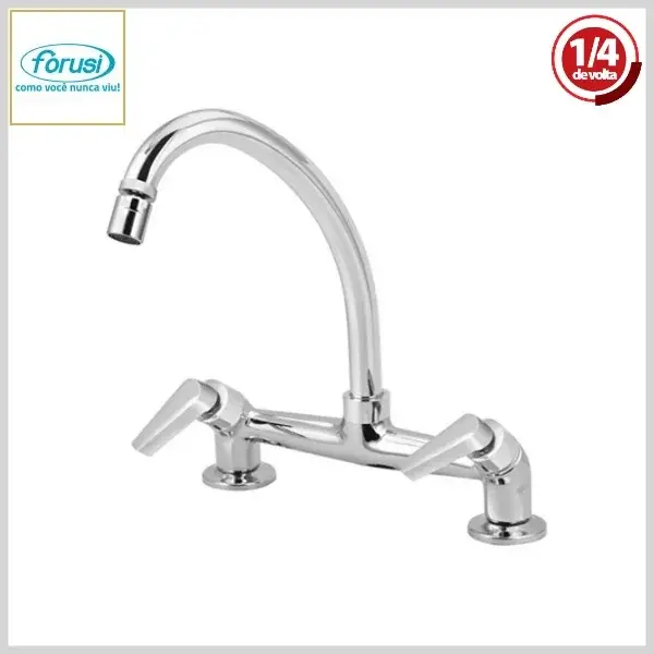 Misturador de Cozinha 2160 Clock Luxo 1/4Volta Mesa Bica Móvel Cromado - Arejador Móvel, Volante Metal - Forusi