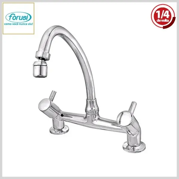 Misturador de Cozinha 2160 Galiza Luxo 1/4Volta Mesa Bica Móvel Cromado - Arejador Móvel, Volante Metal - Forusi