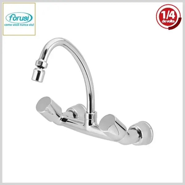 Misturador de Cozinha 2161 BellaLuna Luxo 1/4Volta Parede Bica Móvel Cromado - Arejador Móvel, Volante Metal - Forusi