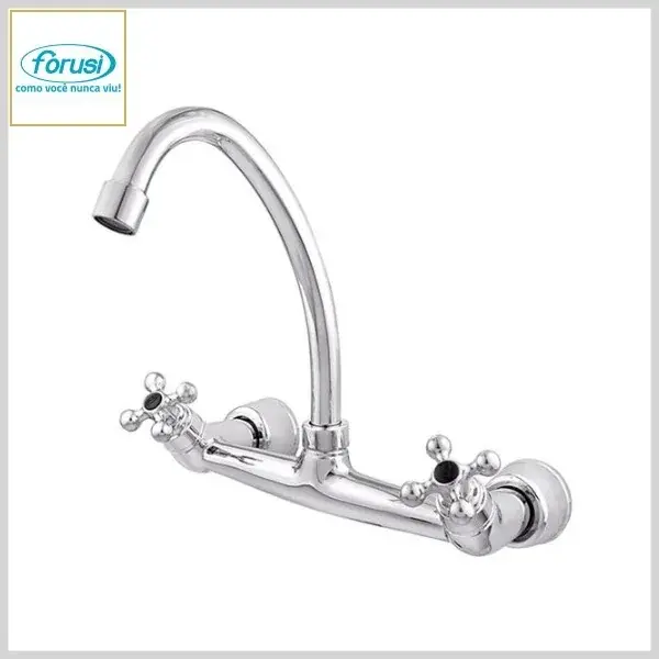 Misturador de Cozinha 2161 C-33 Mvs Parede Mesa Bica Móvel Cromado - Arejador Fixo, Volante Metal - Forusi
