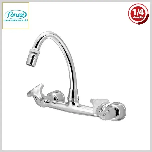 Misturador de Cozinha 2161 Treviso Luxo 1/4Volta Parede Bica Móvel Cromado - Arejador Móvel, Volante Metal - Forusi