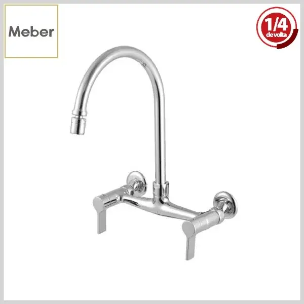 Misturador de Cozinha 3003 C-36 Atria 1/4Volta Parede Bica Móvel Metal Cromado - Arejador Móvel, Volante Metal - Meber