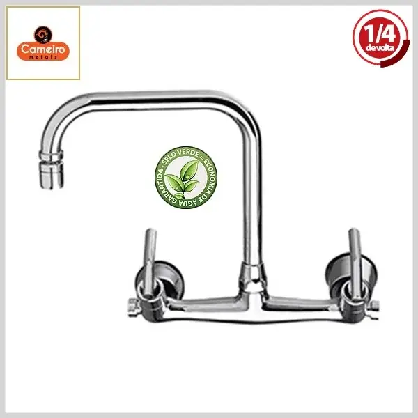 Misturador de Cozinha c/Saída de Filtro 6247 C62 Boer Parede Bica 90º Móvel 1/4Volta Cromado - Arejador Móvel, Volante Metal - Carneiro Metais