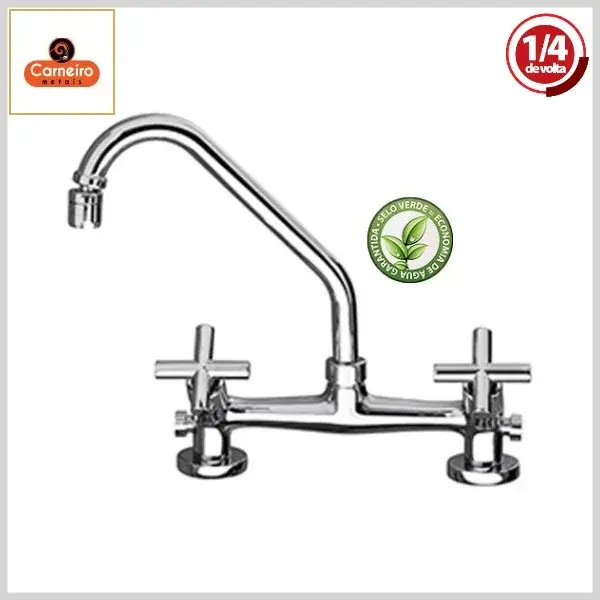 Misturador de Cozinha c/Saída de Filtro 6256 C64 Border Mesa Bica Alta Móvel 1/4Volta Cromado - Arejador Móvel, Volante Metal - Carneiro Metais
