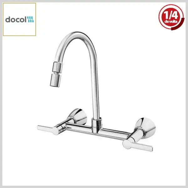 Misturador de Cozinha Gali Parede Bica Alta Móvel Cromado - 1/2 e 3/4 pol - ¼ Volta - Docol