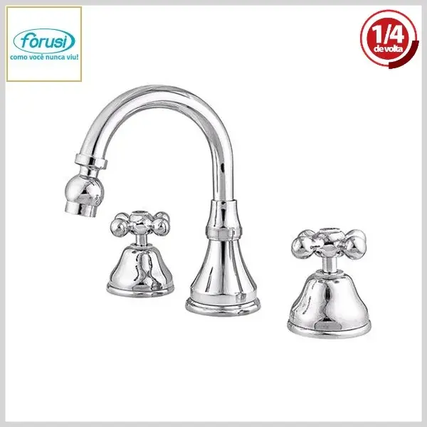 Misturador de Lavatório 1875 BelleEpoque Fiori Luxo 1/4Volta Mesa Bica Fixa Cromado - Arejador Fixo, Volante Metal - Forusi