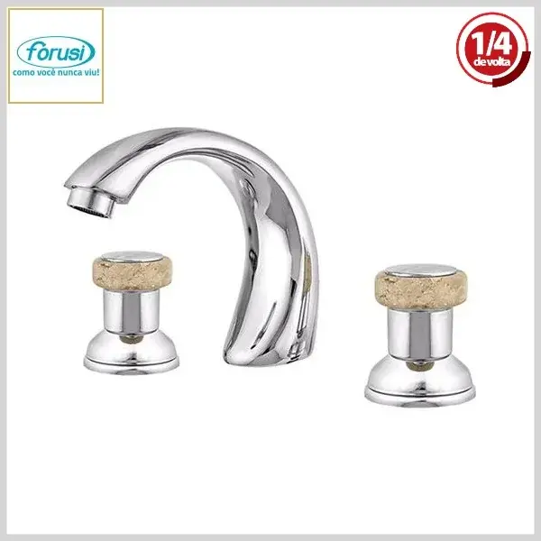 Misturador de Lavatório 1875 Saturno Travertino ItalianLine 1/4Volta Mesa Bica Fixa Cromado - Arejador Fixo, Volante Metal - Forusi