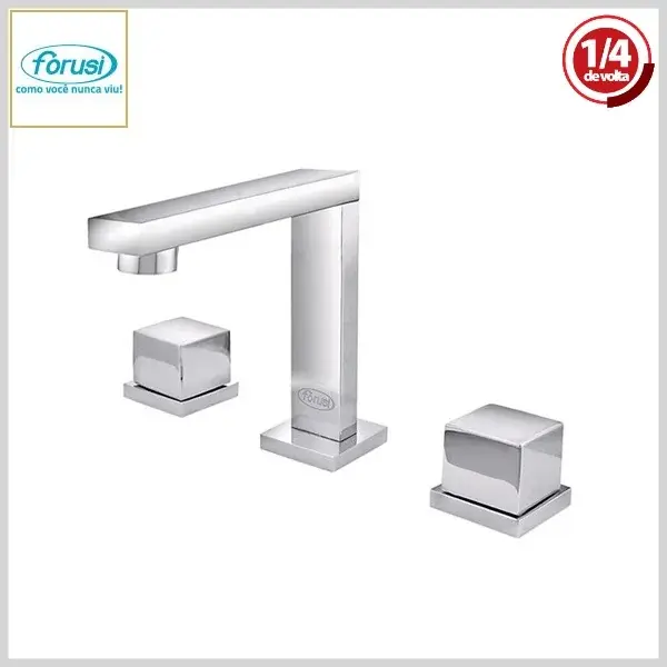 Misturador de Lavatório 1875 SquareLine Luxo 1/4Volta Mesa Bica Baixa Cromado - Arejador Fixo, Volante Metal - Forusi
