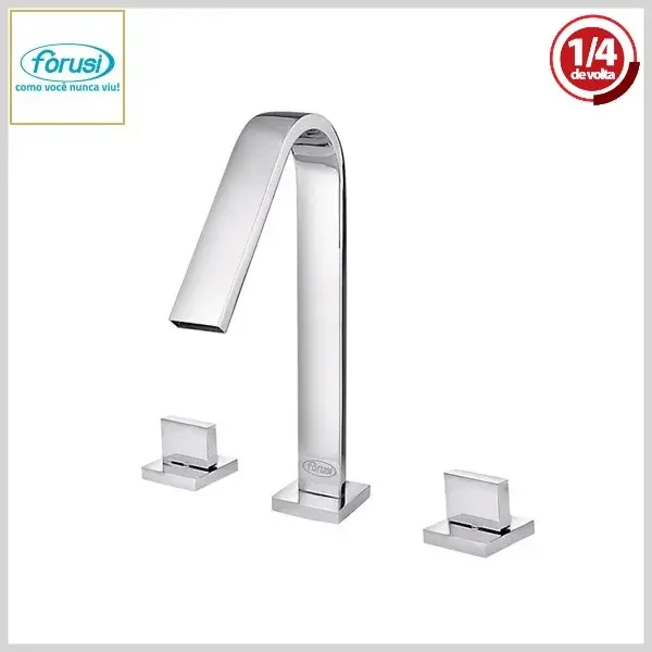 Misturador de Lavatório 1875 SquareLine Luxo 1/4Volta Mesa Bica Tubular Cromado - Saída s/Arejador, Volante Metal - Forusi