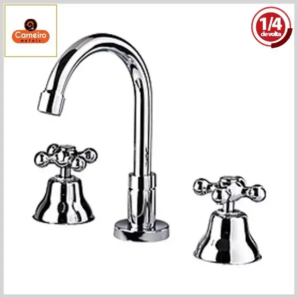 Misturador de Lavatório 1876 C52 Persian Mesa Bica Alta Móvel 1/4Volta Cromado - Arejador Fixo, Volante Metal - Carneiro Metais