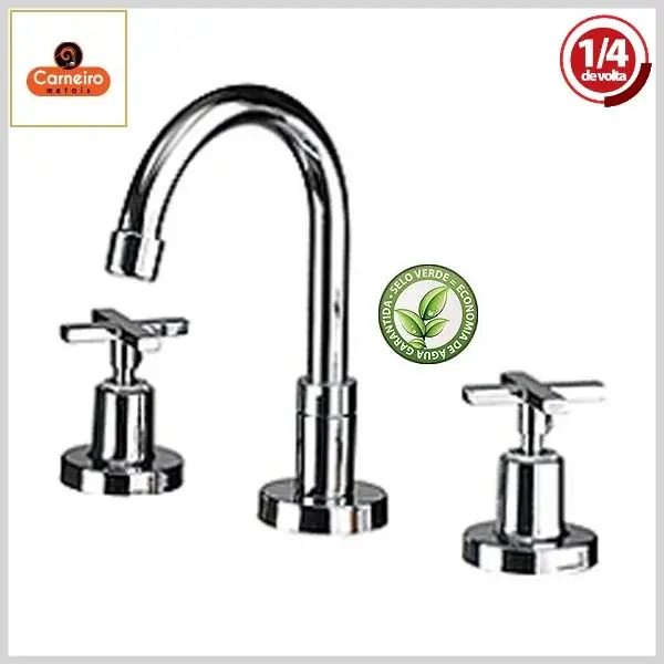 Misturador de Lavatório 1876 C56 Bovska Mesa Bica Alta Móvel 1/4Volta Cromado - Arejador Fixo, Volante Metal - Carneiro Metais