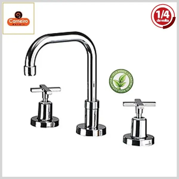 Misturador de Lavatório 1877 C56 Bovska Mesa Bica 90º Móvel 1/4Volta Cromado - Arejador Fixo, Volante Metal - Carneiro Metais