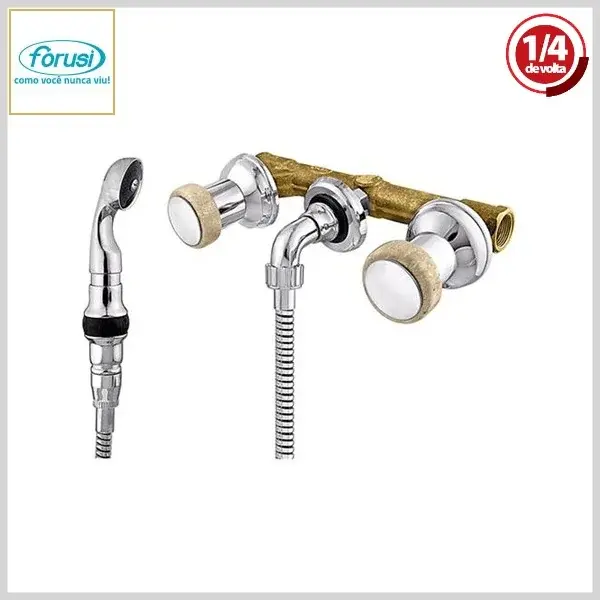 Misturador de Lavatório Embutido 1875 Saturno Travertino 1/4Volta c/Gatilho Fone Cromado - Gatilho Metal, Volante Metal - Forusi