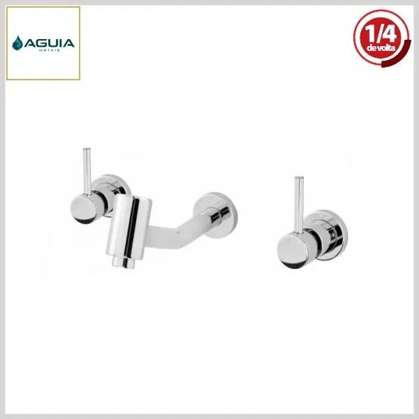 Misturador de Lavatório Stillus 1876 Parede Bica Curta 25º Fixa Cromado - 1/2 e 3/4 pol - ¼ Volta - Águia Metais