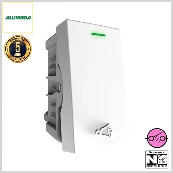 Módulo de Embutir Pro 1 Pulsador de Campainha c/Luz - 10 Amp x 250 Volts - Alumbra