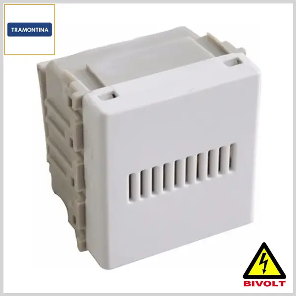 Os módulos de embutir Tramontina são produzidos em material termoplástico antichama branco ou grafite com acabamento brilhante, que não retém poeira. As conexões são efetuadas por meio de bornes e parafusos, que tornam mais seguros os contatos com a rede elétrica. São indicados para compor os sistemas elétricos de embutir com diversas linhas de placas de acabamento do mesmo fabricante.
