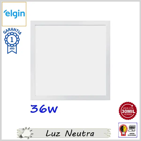 Painel Led de Embutir Bivolt Quadrado 620X620mm 4000K (Luz Neutra) - Branco - 36W x 2880 lumens - Elgin