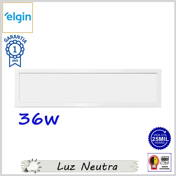Painel Led de Embutir Bivolt Retangular 1220x320mm 4000K (Luz Neutra) - Branco - 36W x 2880 lumens - Elgin